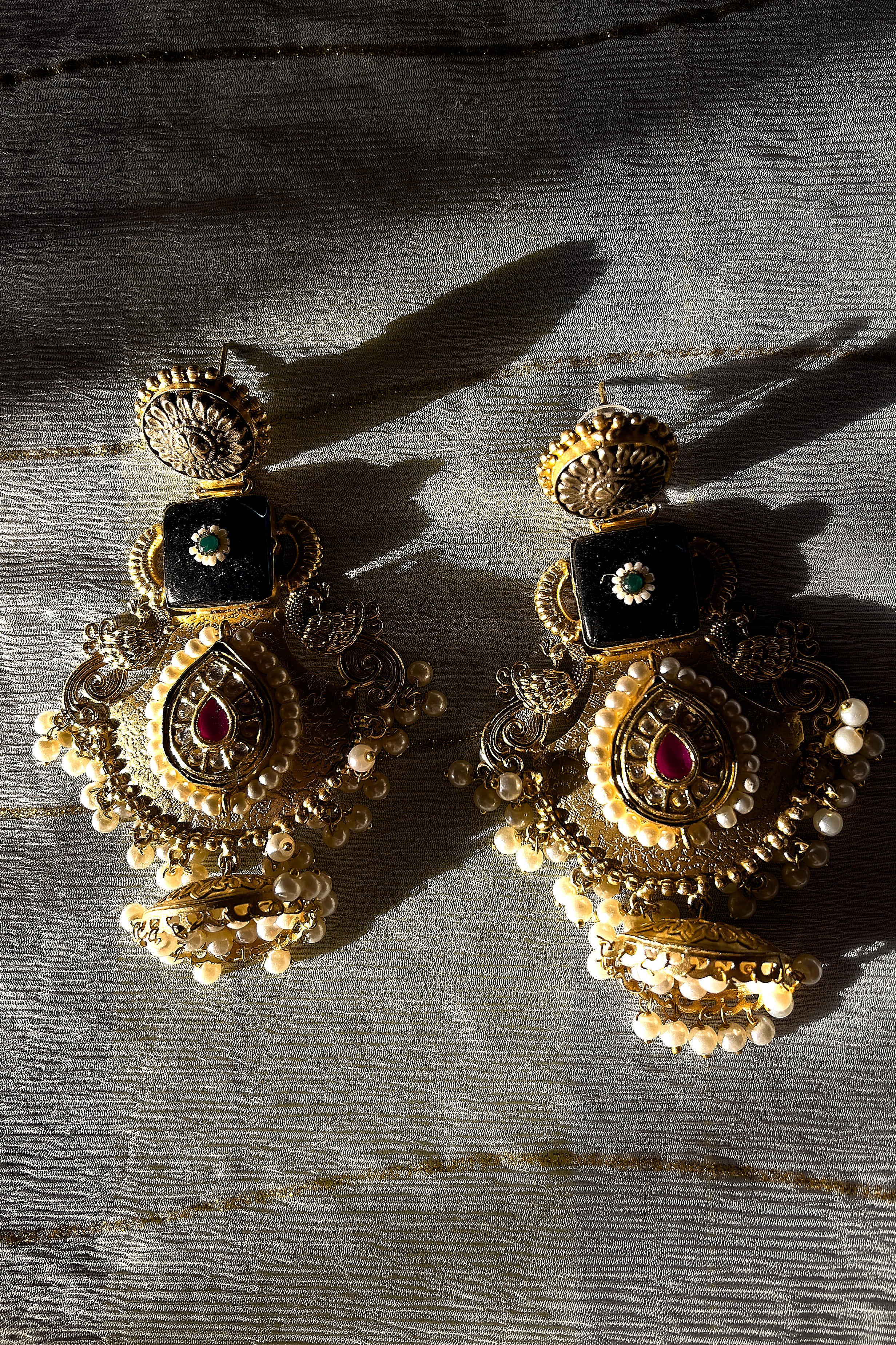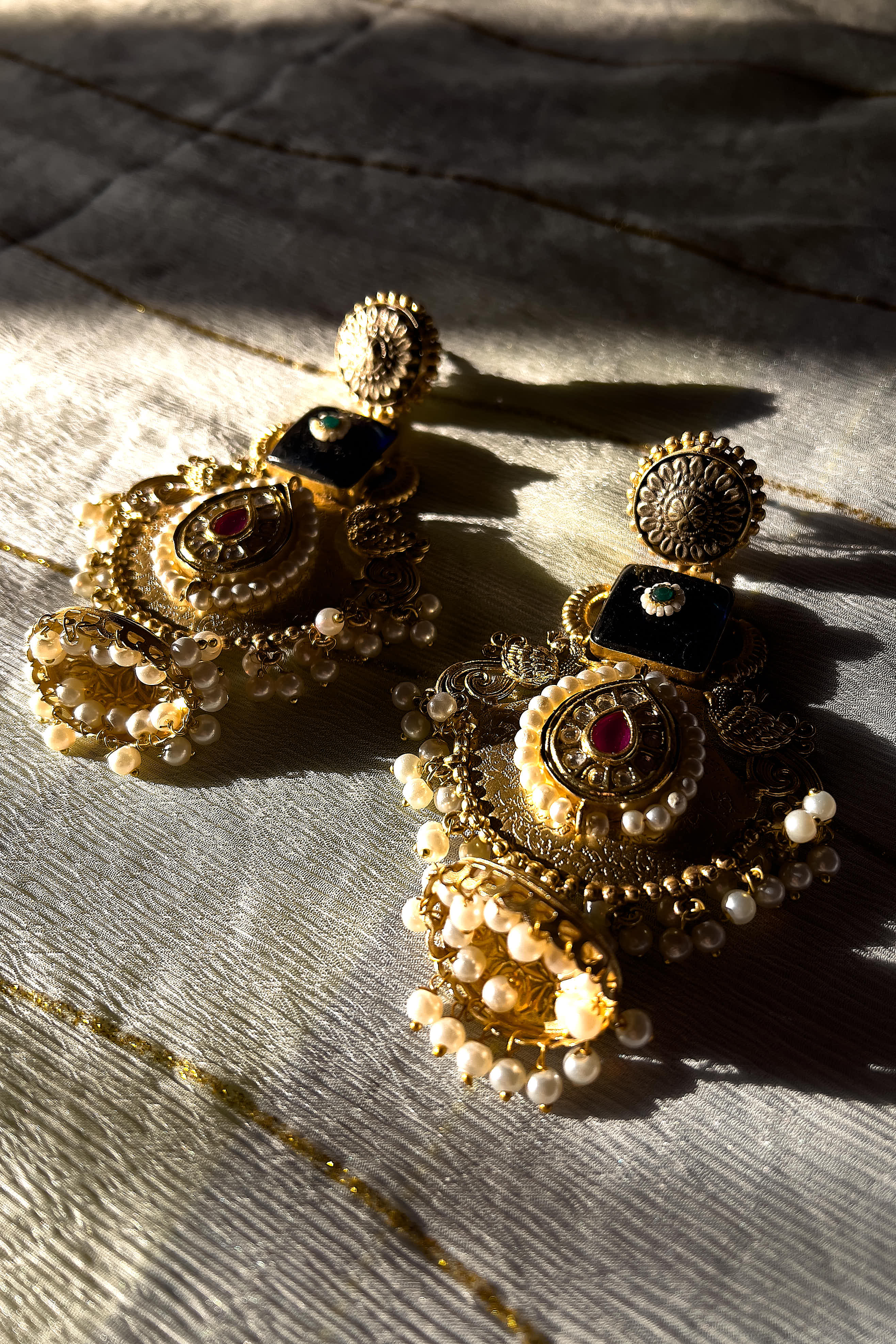 A timeless Kundan masterpiece crafted in regal detail, adorned with delicate pearls and rich gemstone accents. Inspired by royal heirloom jewellery, these chandbalis bring together tradition, elegance, and celebratory grandeur — made for moments that deserve attention. Classic. Opulent. Forever festive.