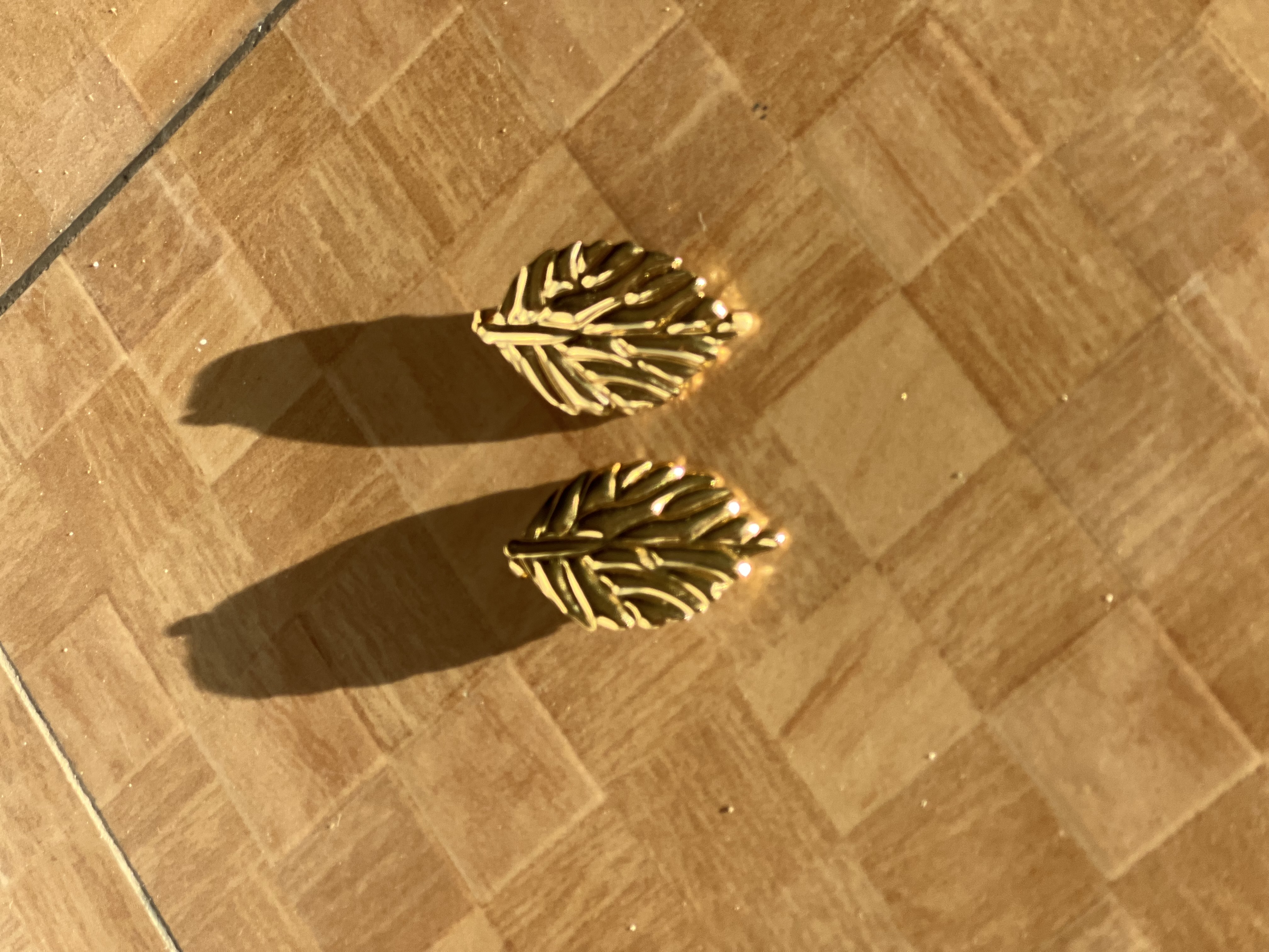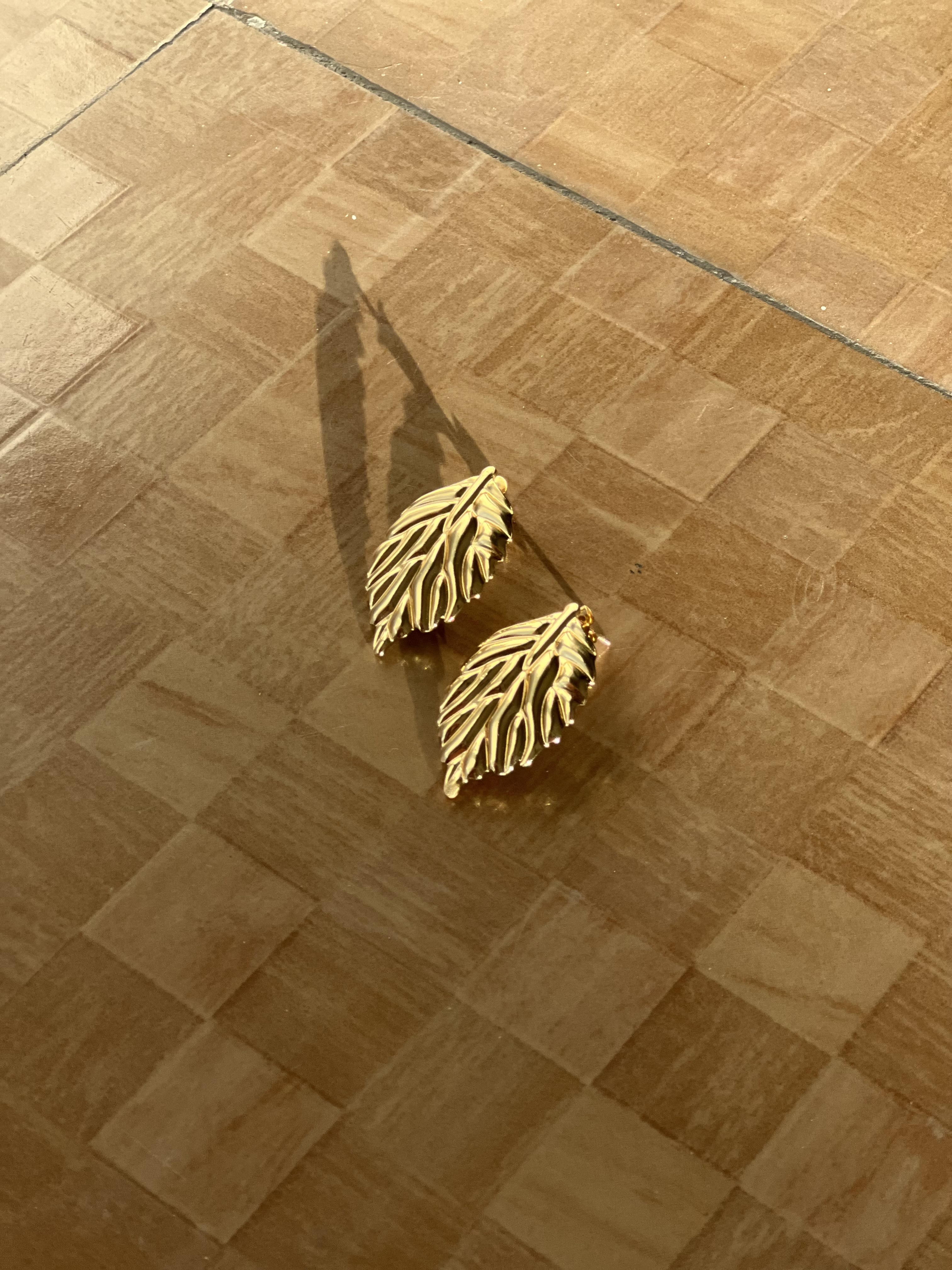 Leaf-shaped earrings with a dual-tone finish, simple and elegant for everyday wear.