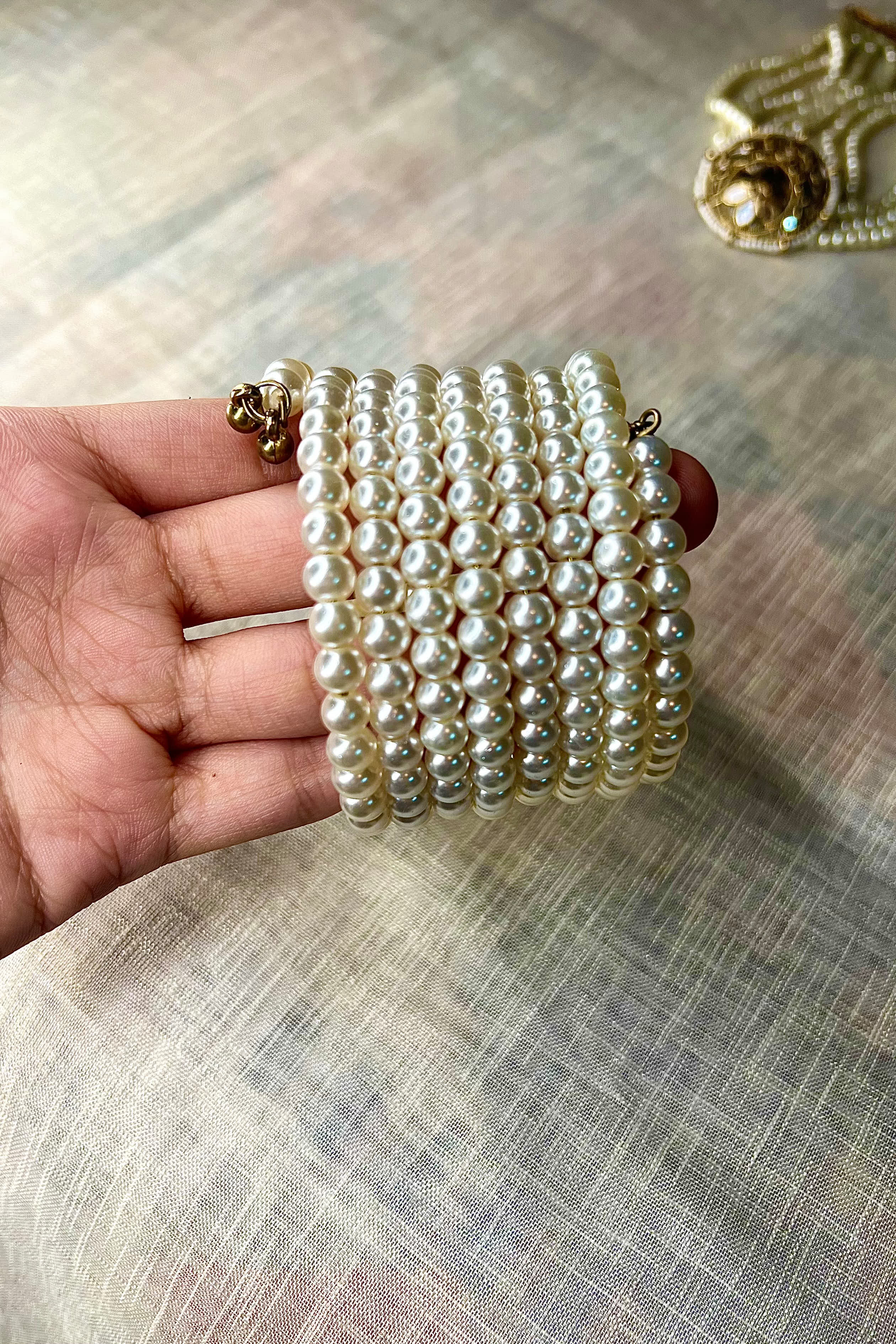 Multi-layered pearl coil bracelet with soft movement and a classic finish.